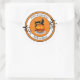 Cet autocollant rond de grande taille est montré dans un joli chat noir Halloween festif et imprimé citrouille. Customisez cet objet ou achetez tel quel.