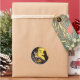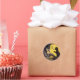 Carte postale vintage d'Halloween montrant un chat un peu tendu criant un avertissement au hibou aux yeux larges dans l'arbre. Réimprimé sur ces autocollants Halloween.
