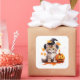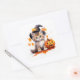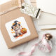 Cet autocollant carré est montré avec une impression d'art de chaton cutie Halloween. Grande taille affichée Personnaliser cet article ou acheter tel quel.
