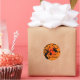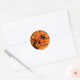 Stickers Halloween Witch Et Owl Halloween. Une sorcière sur un balai, une chouette sur un arbre éffrayant et des chauves-souris sur un arrière - plan orange.