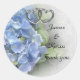 Belle Hydrangea Stickers bleu avec coeur argent et noms pour les faveurs de mariage. Image et composition d'illustration pour de beaux autocollants de faveur de mariage ou des sceaux pour enveloppes. Customisez le nom et le message pour répondre à vos besoins.