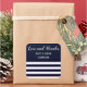Ces autocollants modernes sont parfaits pour les faveurs de mariage, les invitations de scellement, sceller des notes de remerciement, et plus encore. Les utilisations de ces autocollants sont sans fin. Le design comporte un motif rayé bleu marine et blanc en bas, le dessus de l'autocollant est bleu solide. Personnalisez les noms pour rendre la conception complète.