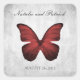 Élégant et simple autocollant Mariage avec un papillon rouge contre un arrière - plan gris grunge. Ce design est un choix unique pour un mariage moderne. Facile à customiser avec vos détails mariages. Cliquez sur "Customiser" pour trouver d'autres options de personnalisation.