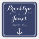 Autocollants de mariage nautique avec cadre blanc, ancre blanche et texte blanc personnalisé imprimé sur arrière - plan bleu marine