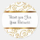 Classy or et blanc damask motif client merci autocollants que vous pouvez ajouter aux factures, lettres, cartons d'expédition ou cadeaux en guise de remerciement. Customisez avec votre propre message de remerciement ou laissez-le comme il est pour montrer merci et reconnaissance pour leur entreprise. Ne vous contentez pas de remercier vos clients, mettez-le par écrit.
