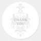 Simple avec élégance chic décrit ce Stickers de Merci de Mariage damassé subtil sophistiqué avec un arrière - plan gris clair damassé fleuri. Ces autocollants de classe sont parfaits pour un mariage traditionnel et peuvent être facilement customisés avec vos détails mariages. Pour plus d'options de personnalisation, cliquez sur le bouton Customiser.