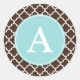 Un motif marron chocolat foncé et un accent aqua donnent à ces autocollants monogrammes un style rétro. Personnalisez le texte en fonction de vos besoins. Utilisez ces autocollants dans la cuisine, pour la boulangerie, l'école, les affaires, le bureau, l'artisanat, les cadeaux, les sacs-cadeaux, un mariage, le baby shower, etc...Le design est de l'art original.