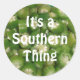 Photographie de gomme coupée remplie aux bords de l'autocollant avec les mots "C'est une chose du sud" imprimés sur le dessus.