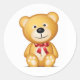 Autocollant rond montré avec un imprimé d'ours en peluche mignon. Customisez cet objet ou achetez tel quel. com.