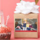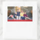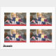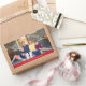 Rectangle rouge Joyeux autocollants photo de Noël avec texte et photo changeables. Photographie © Storytree Studios, Stanford, CA