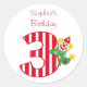 Jolie invitation au clown cirque pour célébrer un 3ème anniversaire avec un clown qui sort derrière un grand numéro rayé rouge et blanc.Le texte est entièrement personnalisable pour votre occasion spéciale. Visitez CelebrationBazaar pour voir la collection de cadeaux, les faveurs de fête et la papeterie avec ce design d'anniversaire de cirque mignon.