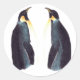 Le design de ces Stickers Rond est une illustration de deux Penguins Empereurs de l'Antarctique qui se font face. Le pingouin empereur est semblable au pingouin roi. Sur l'empereur l'orange sur le visage se fond en blanc. Sur le pingouin roi, l'orange est séparée du blanc avec une bande de noir. Illustré à la main à l'aide de crayons de couleur d'eau Dergone.