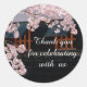 Ce dessin présente une photo d'un sakura cerisier en fleurs. L'arrière - plan est un bâtiment de style japonais. Personnalisez ces autocollants avec votre propre message. Ces autocollants sont parfaits pour les mariages de printemps, de fleurs de cerisiers ou de fleurs. Ils peuvent aussi être utilisés pour un fiançailles, une douche nuptiale, merci, anniversaire, remise de diplômes ou anniversaire.