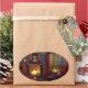 Un coin lecture confortable par jour pluvieux d'automne. Autour du foyer, un feu éclatant, des fauteuils rouges moelleux, des piles de livres, des teacakes et une théière complètent le confort. À l'extérieur, un saule jaune et une haie d'érable et de hêtre rouges sont obscurcis par la pluie qui s'enflamme, qui asperge la fenêtre où un chat gingembre s'assoit en regardant dehors.