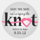 Assurez-vous que vos amis et votre famille SAVE THE DATE avec un joli noeud d'amour de coeur rose pour le "O" dans le texte KNOT. Personnalisable TYING THE KNOT stickers pour votre journée spéciale.
