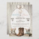Feiern Sie die Freude eines kleinen unterwegs mit dieser rustikalen, schicken Genossenschaft, die in einem warmen Boho-Stil entworfen wurde, der perfekt für jede landesweit inspirierte Feier ist. Mit einem charmanten Mix aus Designelementen: Aquarellkuchenstiefel neben Maurerkirschen mit Wildblumen. Diese Einladung verbindet rustikale Eleganz mit einem gemütlichen Bauernhaus. Eine weiche, beige Holzkulisse, gepaart mit einem whimsical Satin-Bogen und der fett geschriebenen Schlagzeile "Bows or Boots", Set den Ton für eine lässige und dennoch stilvolle Ansammlung. Dieses Design eignet sich perfekt für Eltern, die Western-Charme, neutrale Paletten und eine Touch von entspannter Eleganz Liebe lieben. Es eignet sich hervorragend für Party im Freien, Stalllokale oder gemütliche Lodge-Feste.