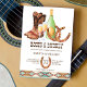 Stiefel und blubbly Western Cowgirl Brunch Paare Dusche Einladung. Cowboy Stiefel, Champagner, Champagnergläser, Hufeisen für einen Western Land rustikales Brautparty.