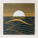Stilisierte Abbildung einer Sonne oder Vollmond, die auf einem dunklen Meer aufsteigt oder untergeht. Fang die aufgehende Sonne oder den Mond auf dem dunklen Meer! Sonne oder Mond, Himmelstanz. Wappen, Welle, Hintergrund, Muster, Dekoration, Wasser, Strand, Sommer, Natur, Illustration, Landschaft, Licht, Sonne, Poster, Meer, Mond, Sonnenuntergang, Meer, Linien, Umwelt