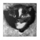 Dieses niedliche Kätzchen ging in die Pferdeställe meines Mannes und bleibe dort. Ich habe das Bild digital so verändert, dass es wie ein nahes, schwarz-weißes Porträt eines Smoking-Kätzchens aussieht, das in einem Augenblick ruhiger Neugier aufgenommen wurde. Die großen, reflektierenden Augen des Kätzchens blicken eingehend und zeichnete den Fokus inmitten des krassen Kontrastes zwischen seinen dunklen Fell- und Weißmarkierungen. Weiche Texturen umschließen das Kätzchen, verstärken das Gefühl von Wärme und Einsamkeit, während die monochromatische Palette der Komposition eine Schicht künstlerischen Mysteriums hinzufügt.