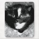 Dieses niedliche Kätzchen ging in die Pferdeställe meines Mannes und bleibe dort. Ich habe das Bild digital so verändert, dass es wie ein nahes, schwarz-weißes Porträt eines Smoking-Kätzchens aussieht, das in einem Augenblick ruhiger Neugier aufgenommen wurde. Die großen, reflektierenden Augen des Kätzchens blicken eingehend und zeichnete den Fokus inmitten des krassen Kontrastes zwischen seinen dunklen Fell- und Weißmarkierungen. Weiche Texturen umschließen das Kätzchen, verstärken das Gefühl von Wärme und Einsamkeit, während die monochromatische Palette der Komposition eine Schicht künstlerischen Mysteriums hinzufügt.