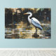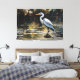 "Stille Reflexion" verbindet Natur und digitale Kunst in einer ätherischen Szene. Ein majestätischer Reiher steht still auf einem pixeligen See, umgeben von goldenen Blättern und geometrischen Wellen. Eine zeitgenössische Note für Räume, die zur Ruhe und Kontemplation einladen.
