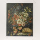 Ein Puzzle mit Stillleben mit Blume und Frucht von Ottmar Elliger datiert aus dem Jahr 1671 und zeigt ein Bouquet mit verschiedenen Blume wie Rose, Lilien, Nelken, Reisen, Narzissen und Säulenbinden. Es gibt auch mehrere Insekten und eine Eidechse.