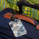 Stilvoll Chic Swirled Blue and Gold Marble Agate Gepäckanhänger