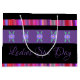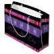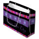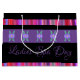 Personalisieren Sie den Text, um den Anzug Ihres eigenen Schaufensters, oder Text ist abnehmbar. Der lila und/oder schwarze Hintergrund kann auf eine beliebige Farbe umgeschaltet werden. Die Streifen der Farb- und/oder Blume Bilder sind abnehmbar. Handgeführtes Papier Einkaufstasche für jeden Anlass.
