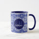 Elegante blaue Tasse der ersten Monogramm. Dieses blaue Design zeichnet Ihren mit Monogramm Vor- und Erstnamen in hellgrauer, moderner Typografie auf einem gemustert geometrisch blau-grauen Hintergrund aus. Dieses trendige elegante Design ist perfekt für Ihr Schlafzimmer, Familienzimmer oder Wohnzimmer. Personalisieren Sie dieses stilvolle Kissen mit dem mit Monogramm Vor- und Nachnamen Ihrer Familie, um Ihr eigenes Kissen zu kreieren. Sie können alle Textfarben und Schriftart ändern, klicken Sie, um weiter unter dem Bereich der Textanpassung, der Sie in das Design-Tool führt, anzupassen. Ein einzigartiges Geschenk zum Geburtstag, Feiertage und jeden besondere Anlass. Ob zum Valentinstag, zu Weihnachten oder als Geschenk im Allgemeinen - es ist eine tolle Geschenkidee
