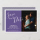 Dieses Foto Save the Date verfügt über einen Rahmen für das vertikale Foto und einen fett lila Hintergrund. Trendy handgeschriebener Stil Text bietet ein modernes Design. Benutzerdefinierter Text erlaubt es Ihnen, Ihre nächsten Hochzeitsdetails hinzuzufügen.