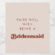 "Pairs well with being bridesmaid" Custom wine label! Ein origineller Vorschlag für eine Brautjungfrau, der perfekt für ein Set in einer Brautjacke geeignet ist. Leicht mit Ihren Lieblingsfarben zu gestalten.