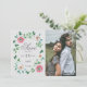 Stilvolle bemalte Blume Save the Date mit Blume auf kohlebeständigem Hintergrund auf der Rückseite. Original-Kunstwerk von Caroline Bonne Müller