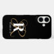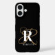 Dieses moderne, personalisierte Monogramm-Handy verfügt über ein elegantes, goldenes Skript, das zunächst mit einem fett weißen Initial und Namen überlagert wurde, auf schwarzem Hintergrund.