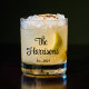 Chic monogramm Whiskey Glas mit Ihrem Familiennamen in einem stilvollen Signaturskript und Ihr Hochzeitstag oder Jahr in einfacher Typografie etabliert.