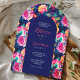 Genießen Sie den Tag mit dieser stilvollen farbenfrohen Blume. Diese Einladung besticht durch lebendige Blumenbilder in einer lebendigen Farbmischung und erweckt die Freude und Energie Ihres Festes. Das moderne Design und die spielerische und dennoch elegante Typografie machen es zu einem idealen Ort für Hochzeiten im Garten, für Feiern im Freien oder für festliche Soirées. Dieses Design verbindet Charme und Eleganz und Set den Ton für einen Tag voller Liebe, Lachen und Farbe. Personalisieren Sie es, um Ihren einzigartigen Stil und ließ Ihre Hochzeitsblüte vom ersten Eindruck.