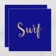 Dieses Küstendesign zeichnet sich durch einen großen zentrierten "Surf" aus, der in festlichem, elegantem Text vor marineblau Hintergrund geschrieben ist.