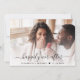 Moderne, helle Creme Ankündigung Datum freihalten mit Ihrem Foto überlagert mit "fröhlich immer danach" in einem stilvollen Drehbuch mit Swashes und Ihren Namen und Hochzeitstag verbunden mit einem Herz. Auf der Rückseite, personalisieren Sie Ihre Ankündigung in eleganter Typografie und geben Sie Ihre Website-Adresse Hochzeit, um einen QR-Code für Ihre Gäste zu scannen, um Hochzeitsaktualisierungen und Details.