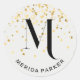 Stilvolle Glam White Gold Glitzer Initial Monogram Runder Aufkleber