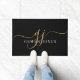 Elegantes minimalistisches Gold und weißes Monogramm auf einem schwarzen Hintergrund Türmatte. Stilvoll und modern.
