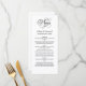 Ein elegantes, minimalistisches, schwarz-weißes Hochzeitsmenü.