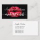 Teilen Sie eine stilvolle Make-upkünstler-Geschäftskarte zu jedem Kunden und zukünftiger Kunde mit den großen roten Lippen auf der Front und Ihr Name und Beruf aus, die mit Ihren Details über die umgedrehteseite gekennzeichnet werden. Entworfen für einen Kosmetikrepräsentanten, das Make-up beruflich oder die Schönheit beruflich.