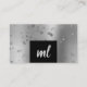 Elegante Visitenkarten mit Imitate silber Konfetti Punkte und Hintergrund Textur, Initialen und Kontaktinformationen.