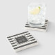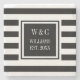 Eleganter personalisierter Untersetzer mit Monogramm-Initialen mit schwarz-weiß gestreiften Mustern mit Ihren Initialen und Familiennamen mit Ihrem etablierten Date Set in einem schwarz-borderten Quadrat mit einem klassischen weißen Text. Entwickelt von Thisisnotme©