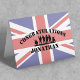 Ein einfaches Militär, das Grußkarte mit, die Gewerkschaft Jack britisch Fahne, das Wort "Glückwünsche", Soldaten in der Silhouette und den Namen des Soldaten.