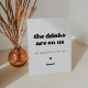 Die Getränke sind auf uns, der Kater ist auf Ihnen: Open Bar wedding Schild. Ein Retro-Chic-Thema: adoptier dieses etwas Vintage und stilvolle typografische Design für dein Hochzeitsgeschenk mit einem klassischen Schwarz-Weiß-Thema. Anpassbare Textfarben und Hintergründe.