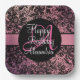 Stilvolle Rosa Blush Black Floral Monogram Birthda Pappteller