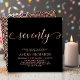 Eleganter Chic Trendy Black und Rose Gold Siebziges Script 70. Geburtstag Einladung. Diese moderne Geburtstagsfeiereinladung für die Frau enthält stilvolle "siebzig" Texte in riesigen Imitate Rose Goldfolie Wirbel handgeschriebene Kalligraphie (oder Typografie) Skript mit Swash Schwanz Schriftart, Party Details in der schwarzen Rose goldfarben auf schwarzem Hintergrund. Auf der Rückseite Imitate Rose Goldfolie abstrakt Wirbles Wellenkreismuster auf schwarzem Hintergrund. Ideal zum Feiern, mädchenhafte Geburtstage von Meilenstein im Stil, fügt diese Einladung eine Touch Glamour zu jedem weiblichen Party hinzu.