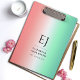 Bleibe mit unserer stilvollen Red Green White Gradient Initial Monogram Clipboard stilvoll organisiert! Diese Clipboard ist mit einem auffallenden Hintergrund aus rotem, grünem und weißem Farbverlauf ausgestattet und kann mit Ihren Monogramm-Initialen, dem vollen Namen und dem Beruf in eleganter schwarzer Typografie vollständig angepasst werden. Ein nachdenkliches Geschenk für Freunde, Familie, Kollegen oder Lehrer! Perfekt für Geburtstage, Abschlüsse, Schulabgänger und vieles mehr. Eine praktische und schicke Ergänzung zu jedem Arbeitsplatz!