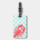 Stilvoller Sommerspaß-Gepäckanhänger getan in einem Aquamarine mit weißen Tupfen. Die Front des Umbaus hat eine Koralle farbige Silhouette eines Hummers, und die Rückseite hat einen kreisförmigen korallenroten Textbereich, auf dem links. Weißer Text ist bereit zu personifizieren. Groß für Gepäck und mehr.