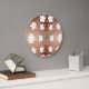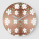 Eine Designuhr in einem modernen, blühenden, braunen Druck. Die weißen Blume können in jeder Farbe personalisiert werden.